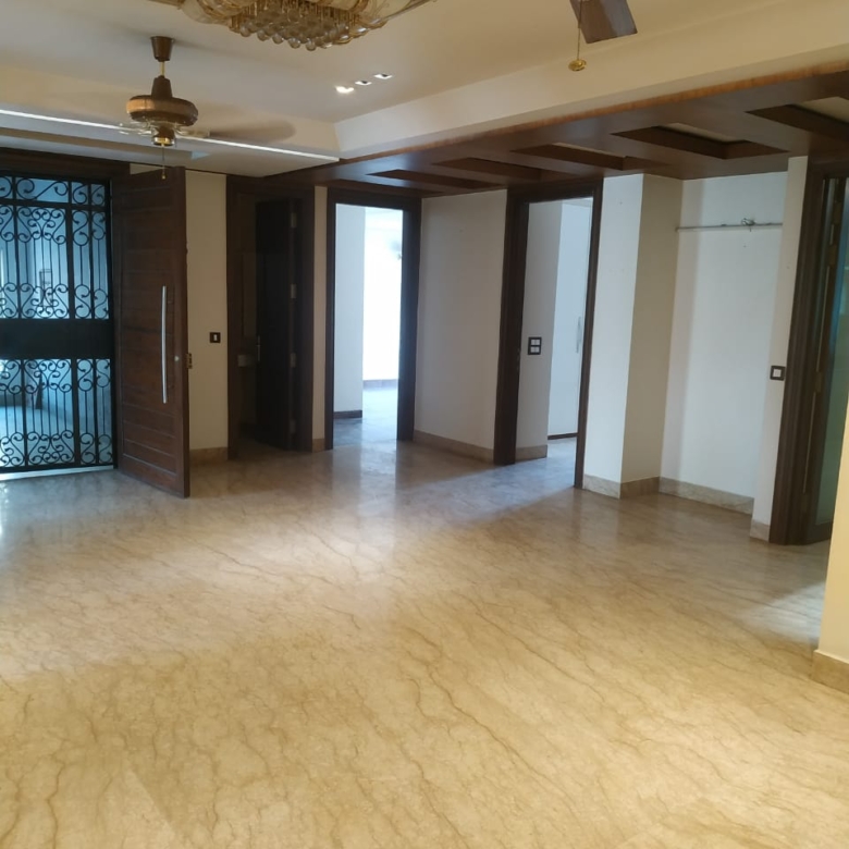 Saket 300 yds second floor apartment four beds attached washroom drawing dining lounge kitchen etc stilt parking well maintained property suits reputed Indian companies foreign missions etc